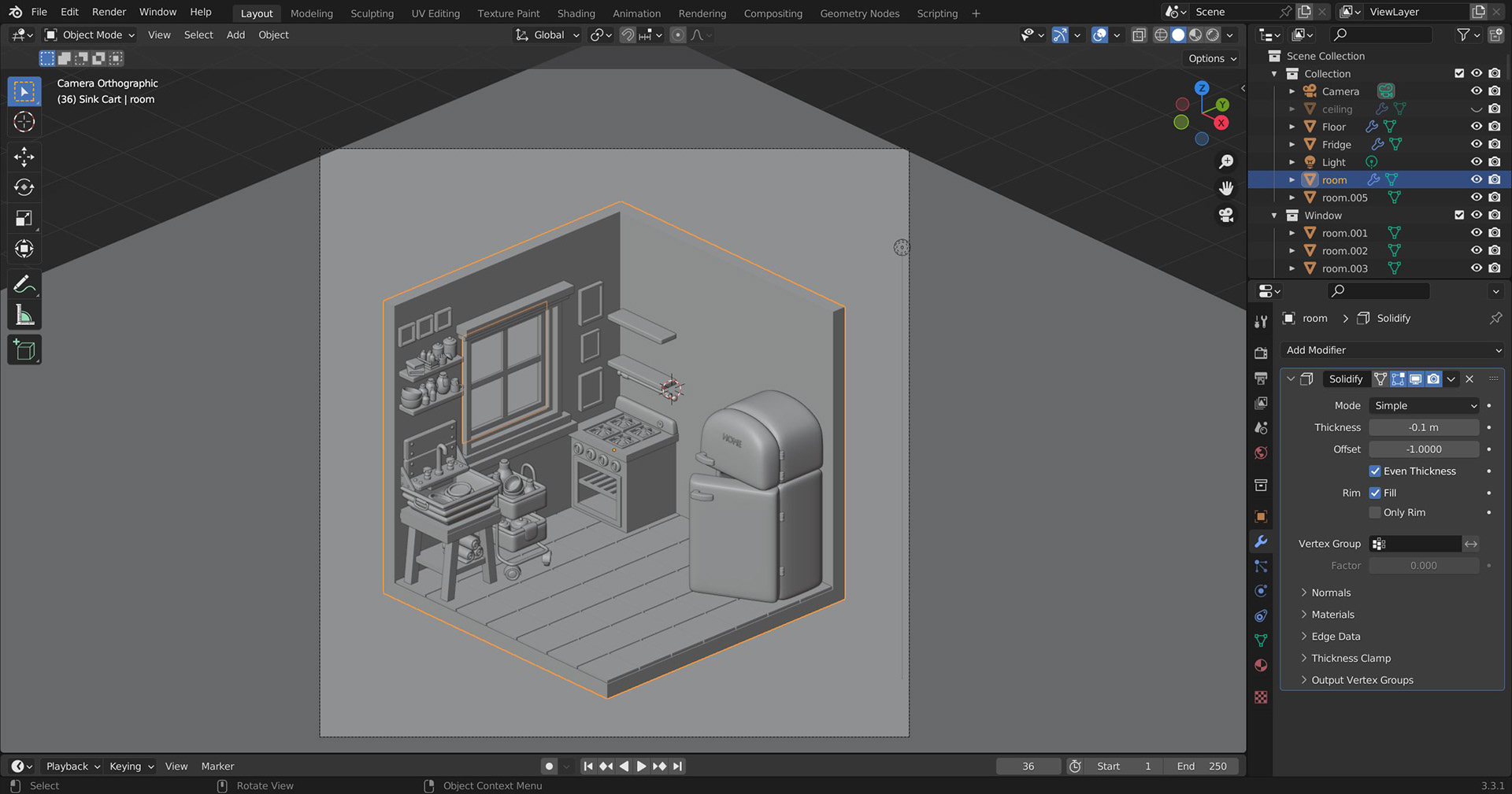 The below right image is a screen capture from a model I was building following a "Cozy Kitchen" tutorial on YouTube by Nicky Blender
