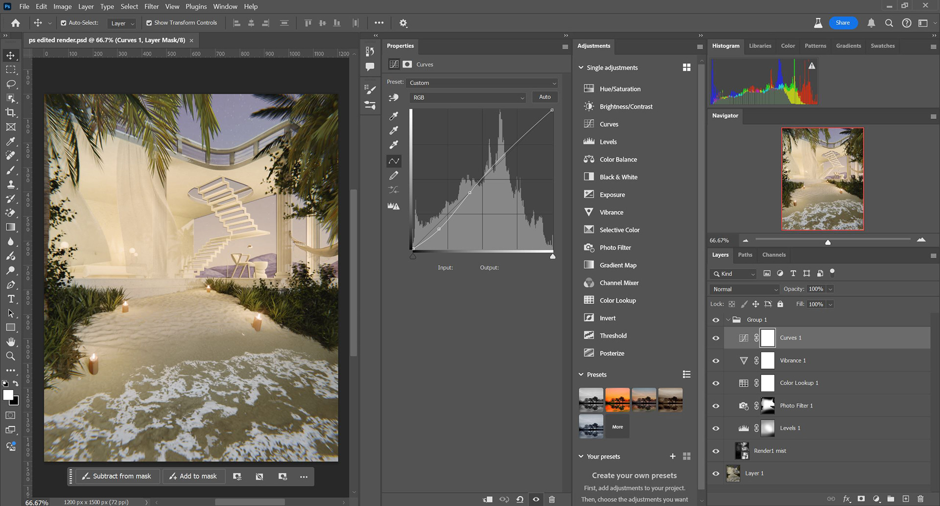 Created a mist render to add more depth to the image, particularly in the mountain scenery at the back.
